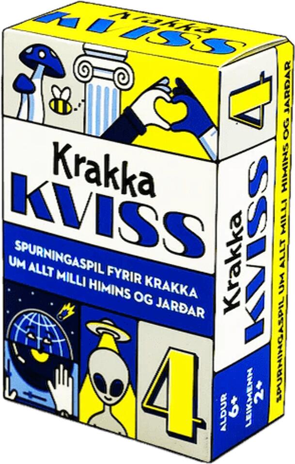 Krakkakviss is a fun and educational trivia game perfect for any occasion. The Krakkakviss series has gained incredible popularity, selling tens of thousands of copies in Iceland. Krakkakviss 4 includes 100 cards with 300 brand-new questions covering a wide range of topics. Which members of IceGuys are brothers? How many types of candy can you choose in a...