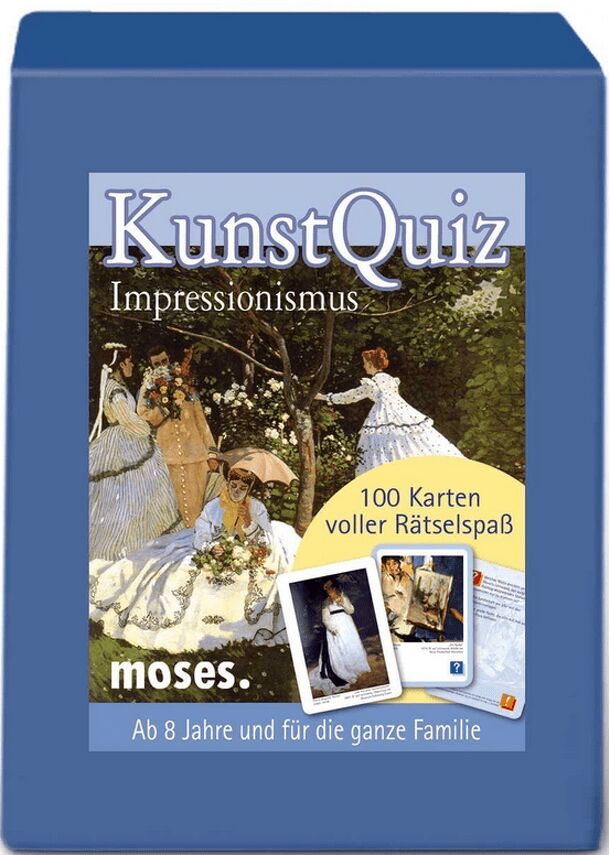 KunstQuiz Impressionismus is an exciting journey into the fascinating world of art. Learn the great impressionists and their most important works to know! And test Your knowledge of art at home, after visiting the museum or just so in between! In this jam-packed art quiz box you will find: 24 world-renowned painter, 24 selected paintings, 72 detailed image...