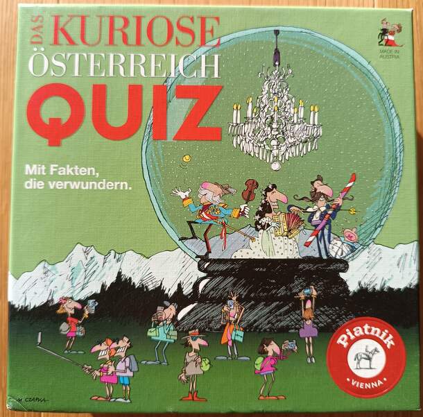 Das kuriose Österreich Quiz is a trivia game about Austria containing 202 question cards with three multiple choice answers each. In contrast to "Das neue Österreich Quiz" the questions are curious and funny. The game is played in turns. One player is reading while the other players try to answer. For a correct answer the player earns a point. Depending on...
