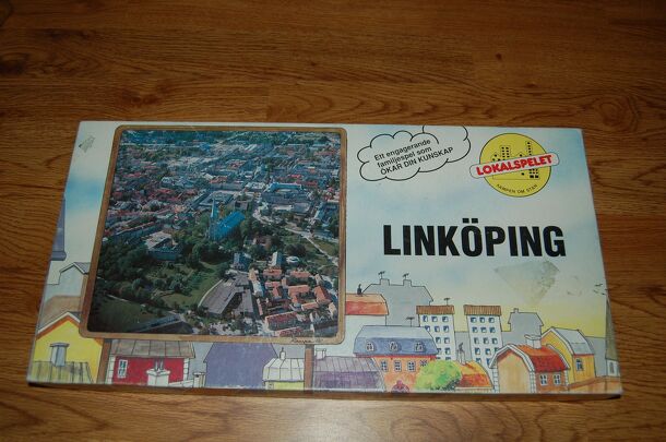 From the publisher: This is a Monopoly clone. The publisher Lokalspelet i Skandinavien AB did a lot of these games as promotions for different cities in the 1990s. In the middle of the board is a photo of the Kristianstad and around that is a lot of the stores in the city. You can buy stock in them, and you can get cards that ask you questions about the...