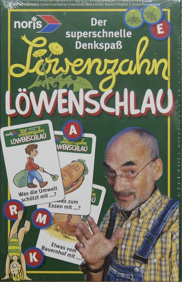 Quiz game based on Stadt Land Fluss - 55 question cards are placed in a stack with the theme side up, the letter tiles are shuffled face down and laid out. The player on the turn reveals a letter tile and all players simultaneously search for a term matching the card with the revealed initial letter. The first player to name a correct term gets the card...