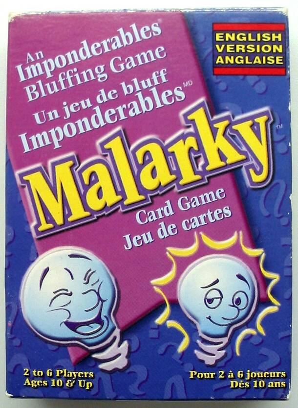 Malarky is a bluffing and trivia party game where players try to outwit each other by inventing believable answers to quirky questions. Each round, a reader selects a trivia question—often odd or humorous in nature—such as, “Why does Mickey Mouse have only four fingers?” One player receives the real answer hidden inside a wallet, while the others receive...