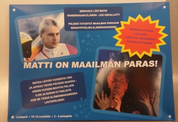 Matti Nykänen is maybe the best ski jumper of all time. After a glorious sports career he has lived a really colorful life including numerous marriages, jail, booze, professional singing and lots and lots of other interesting things. After they made a movie about his life they also created this trivia game about his life. The name of the game translates...