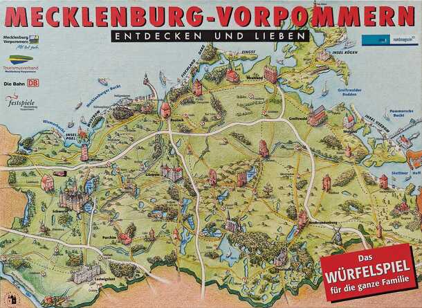 Discover and fall in love with Mecklenburg-West Pomerania Get to know the beautiful state of Mecklenburg-West Pomerania in a playful way: from its regional capital of Schwerin across the whole state to the Baltic coast, through West Pomerania, along the Mecklenburg lake plateau, to the river Elbe and back to Schwerin. With small children, the game can be...