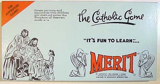 In "Merit", two to four players work to build the six key properties (Church , Convent, Seminary, Catholic Charities, School and Foreign Missions) while maintaining their level of merits (700 points) and obtaining six of the seven sacraments. The first player to return home with the required six sacraments and at least 700 merit points after the six...