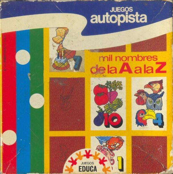 A very easy educational board game for children where each player in turn must pick a thematic card with drawings, look at it secretly and name an animal, object, etc related to the card and beginning with the letter his pivot is on, starting with the "A" and advancing along the alphabet track. Each player has 30 seconds to say a name, if he can not do it...