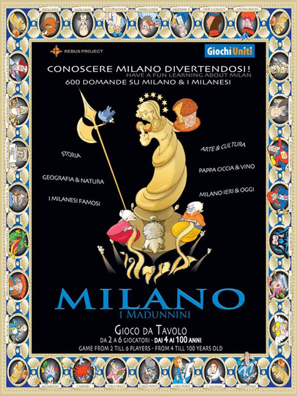 Game description from the publisher: Milano: I Madunnini is a trivia game for kids to adults. It provides an entertaining journey to discover the characters, culture and sights of Milan. To advance on the board, players have to answer questions and carefully manage the travel budget. The player who reaches the end first is the winner. Question Categories:...