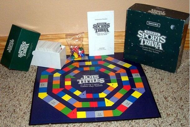Mormon Sports Trivia is very similar to the game Trivial Pursuit, except all questions deal with LDS history, sports, and Mormon athletes. This game was published as a follow up to the success of LDS(Mormon)game "Jots and Tittles" and even uses a Jots and Tittles gameboard. There are six trivia categories: 1) Play on the Field, 2) Action on the Court, 3)...