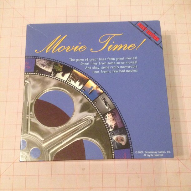 "The game of great lines from great movies! Great lines from some so-so movies! And okay, some really memorable lines from a few bad movies!" Movie Time! is a trivia game about movie quotes. Players are given quotes from movies and they must identify which movie they come from. Each quote gives a score between 1 and 4, depending on the difficulty of the...