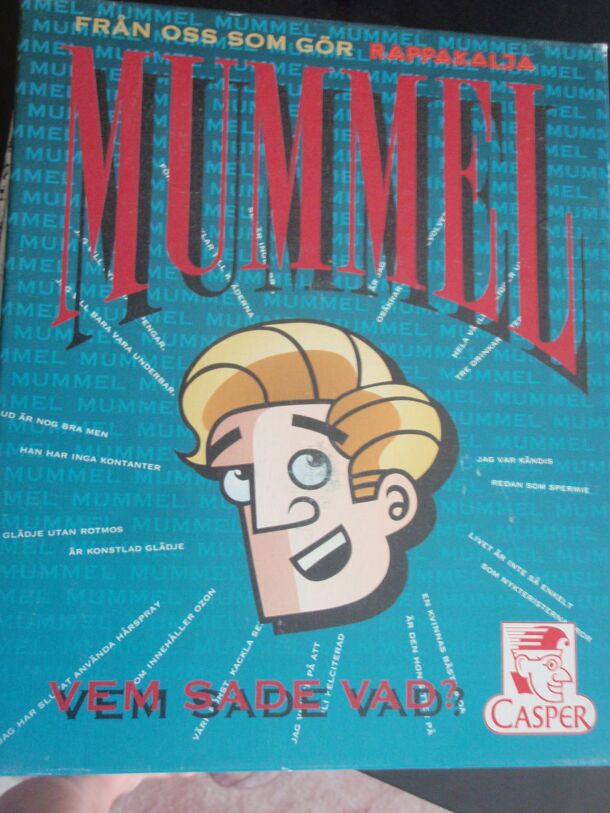 Mummel is a game where the players take turns in the role of the reader. Based on a spin on a wheel the reader do one of six actions. Read a new card asking "Who said: [quote]?" Read a new card asking "What did [Celebrity] say about [fact]?" Read a new card asking "Finish the quote: [uncomplete quote]!" Steal a collected card from one player Give a...