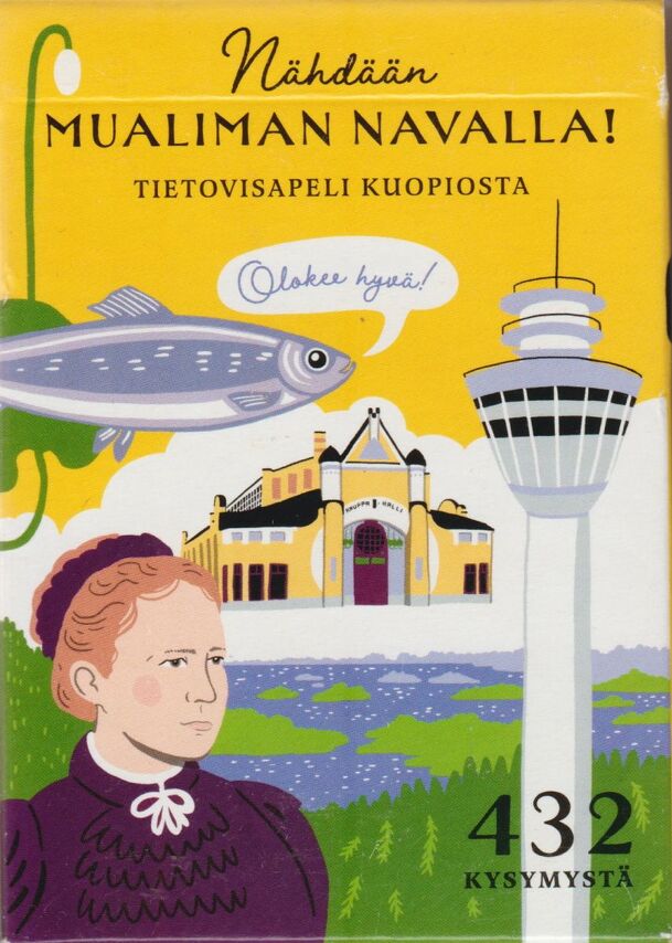 Trivia game about one of Finland's cities, Kuopio. The game has 432 questions and is suitable for everyone who wants to learn more about "the pearl of Savonia" in eastern Finland by the shores of lake Saimaa, famous for the 'kalakukko' traditional fish pie and the sightseeing tower of Puijo. This is the 14th instalment in the Nähdään series of trivia games...