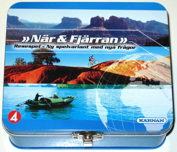 När & Fjärran - resespel is a travel edition of the Swedish travel trivia game När & Fjärran ( http://www.boardgamegeek.com/game/9249 ), but it also has different game play. To win, each player needs to visit each continent. To be able to travel between two continents, a player must answer at least one question about each of the continents correctly, and...