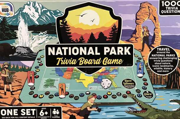 National Park Trivia Board Game is a trivia board game where players will be answering questions about National Parks' history, landmarks, wildlife and more. On a players turn, they roll a die and move that number of spaces. Depending on the space the player lands on, they will draw a card from the corresponding deck and answer one of the six questions....