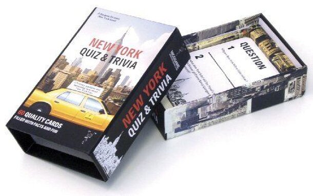 New York Quiz is a game for anyone who has ever visited New York City, or dreams of doing so! With 170 tricky questions and fascinating facts about the Big Apple, everyone will find something to tickle their brain cells with. It's the perfect way to warm up to a coming New York trip, or remember it once you are back home. There are 2 question in each card...