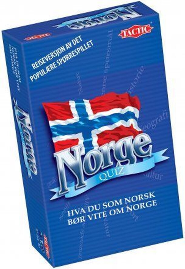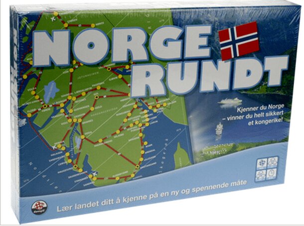 This is a Family game with a mix of questions about Norwegian geography, history and culture. Every Player are to visit 16 random towns/villages, and have to plan their own route and try to be the first to return to their "home town". You move around by throwing dice, and there are little twists like ferry that you either have to have a ticket for or throw...