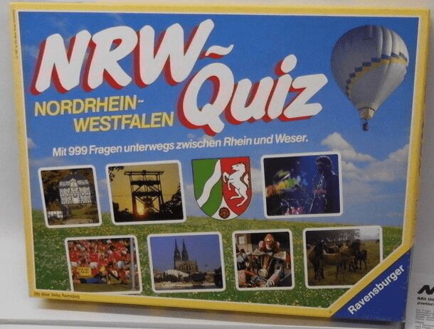 Objective: Gain most bonus chips; learn more about the federal state NRW (Nordrhein-Westfalen) of Germany. - acting by turns - On a board with six nested circles starting in the outer circle each player moves around according die roll. At the end of a circle you cross over to the next inner one. Ending on yellow, green or orange space left neighbor must...
