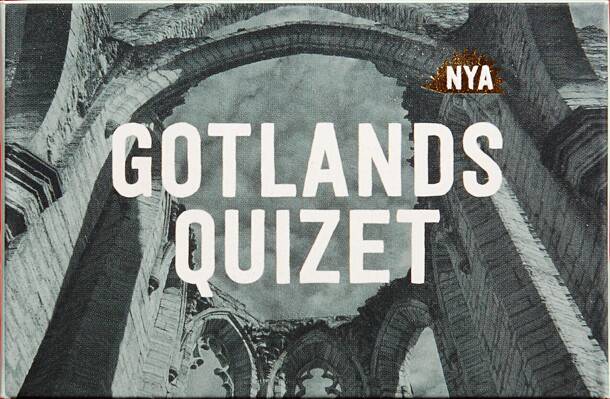 Nya Gotlandsquizet is a quiz game consisting of a pack of cards; questions revolve around the culture and history of Swedish island Gotland in the Baltic Sea. In the default rules players take turns to answer questions, and a player must get both questions on a card right in order to claim it, 10 of which are needed to win. There are a few suggested rule...