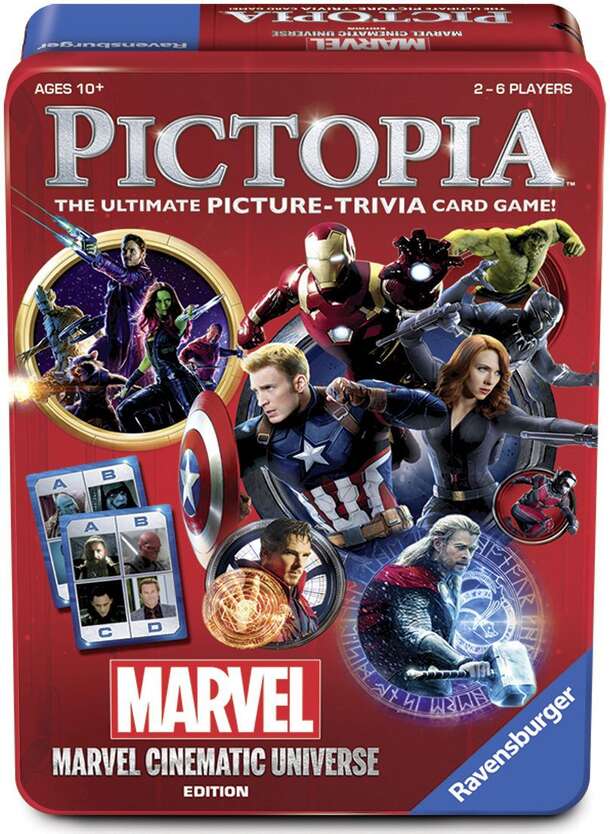 Description from the publisher: Marvel fans assemble for the action-packed, picture-trivia card game Pictopia: Marvel Cinematic Universe Edition'. Test your knowledge of your favorite Marvel movies with two hundred questions! Answer trivia about Earth's Mightiest Heroes, the greatest Guardians of the Galaxy, and all Realms in between! Earn tokens for each...
