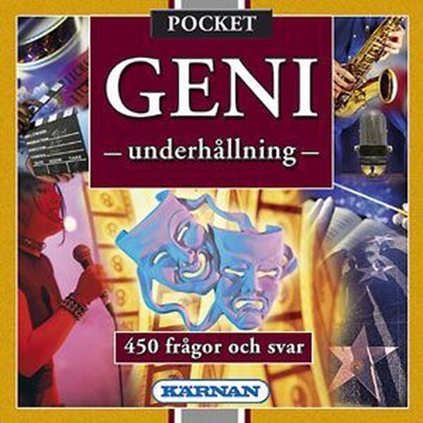 This is a Swedish trivia game all about entertainment, in a travel edition. Players roll a die to determine what category of question to answer. If they answer it correctly, they get to mark one such symbol on a score sheet. The goal is to score a complete line across the score sheet. There is also a twelve-sided die with "GENI" on some of the faces. If a...
