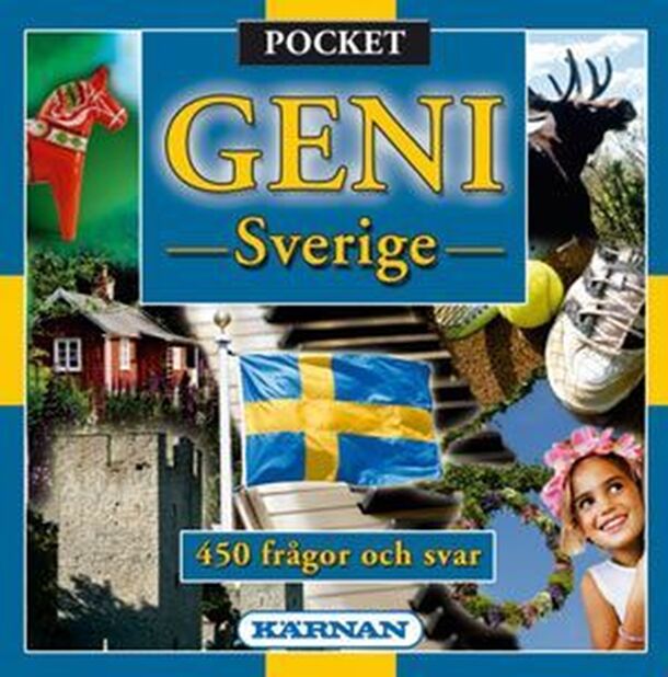 This is a Swedish trivia game all about Sweden, in a travel edition. Players roll a die to determine what category of question to answer. If they answer it correctly, they get to mark one such symbol on a score sheet. The goal is to score a complete line across the score sheet. There is also a twelve-sided die with "GENI" on some of the faces. If a player...