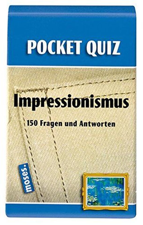 This is a small, pocket-sized trivia game. It contains 50 cards with 3 questions each, most of them with multiple choice options. The backside of each card contains the answers and offers additional information. Most of the cards also show small illustrations. Test your knowledge on the subject of Impressionism! Everything to know about the most famous...