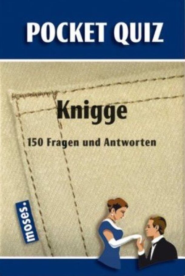 This is a small, pocket-sized trivia game. It contains 50 cards with 3 questions each, most of them with multiple choice answers. The backside of each card contains the answers and offers additional information. Most of the cards also show small illustrations. The questions are all about etiquette; the title "Knigge" refers to Adolph Freiherr Knigge who...