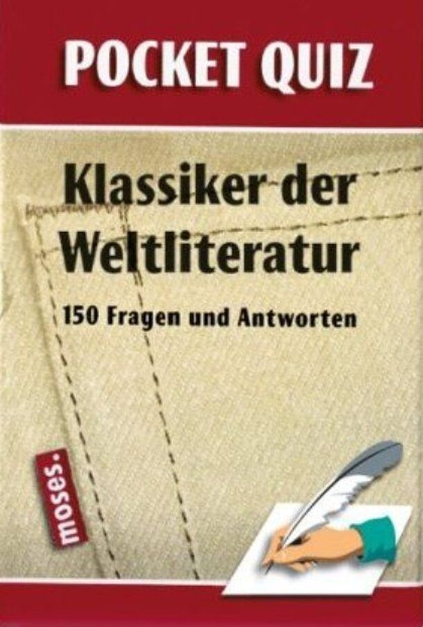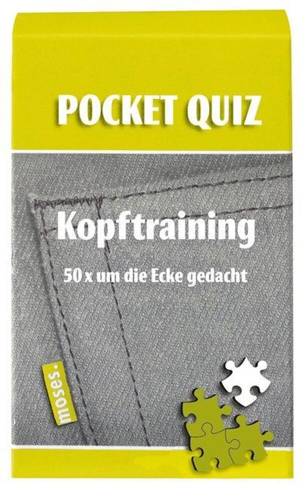 This is a small, pocket-sized trivia game. It contains 50 cards with mental exercises. The backside of each card contains the solutions. Solve the exercises first and get the card. Player with the most cards at the end of the game wins the game. This edition contains 150 questions, tasks, and puzzles about various topics. The title translates to...