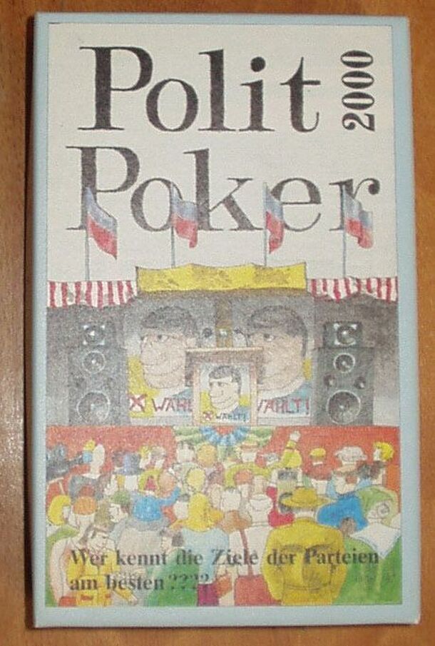 144 cards (double-sided) with quotes from the platforms of German political parties (CDU/CSU, SPD, Grüne, PDS, FDP). In the first round (of three) all the players need to do is guess which quote belongs to which party. If you answer correctly, you get the card. Some rules (like the "Veto" rule) enhance gameplay. In the second round, all players design a...