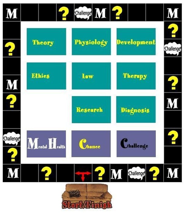 The game is designed for pre-licensure therapists who need to pass the licensing exam in order to work with clients. The object of the game is to be the first person to help your client move from a state of distress to well-adjustment by winning 4 mental health tokens. Contents: Game board 6 game pieces for players A six-sided die 1 stack of cards for each...