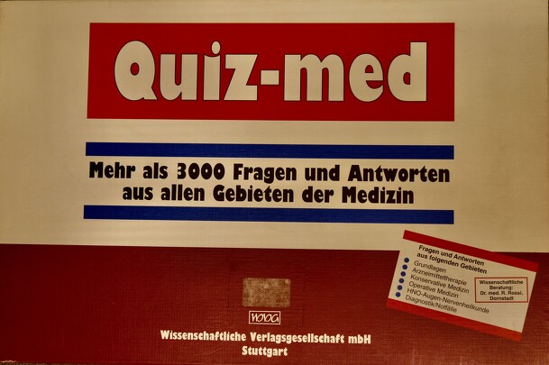 Players move their pawn accross the board and answer questions from six areas of medical knowledge. If the question is answered correctly, the player receives the card. If the question is answered incorrectly, the player sitting to their left receives the card and may answer it. When a player has three cards from one area of knowledge, they can exchange...