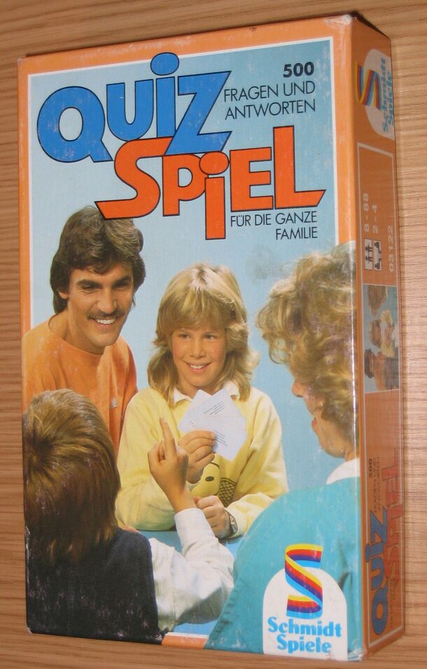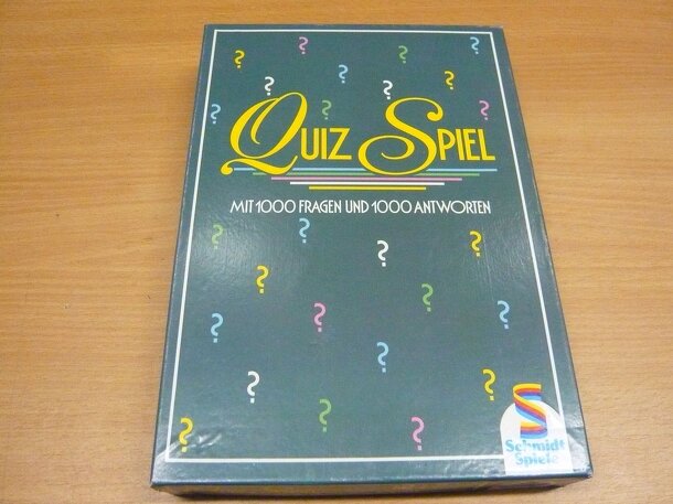 The game board has four fields on each edge, each of these fields has a six question cards. The answers are on the back of each card. Now a number of dice-chips (from one to six) are chosen. This specifies the question to be answered in this round on the cards. Each player now receives chips with various values of 5€ to 500€ and a joker. On his turn...