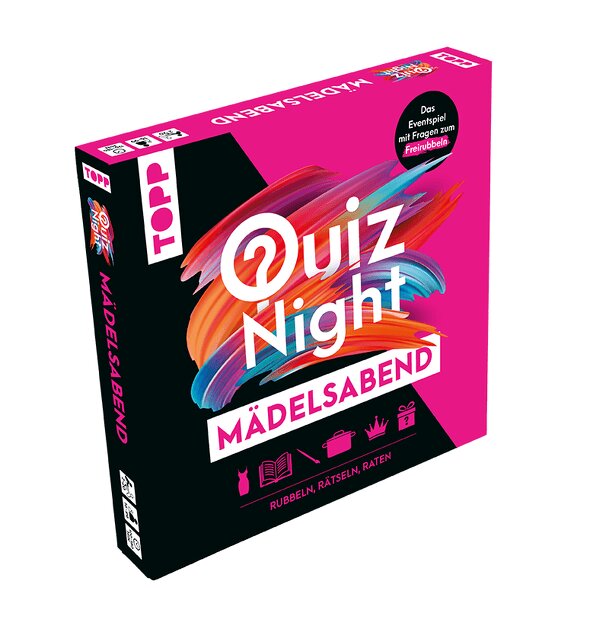 You are just quiztastic and looking for a varied program for your hen party or want to spice up the next girls' night a bit? Then get this quiz game for a unique experience. Exciting questions on funny categories await you here to put your knowledge to the test and challenge the other girls. Scratch the questions, win the mini-games, and get your brain in...