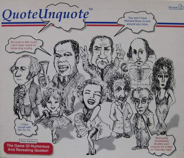 Quotations are read aloud and everyone tries to identify the same famous people. Players do not have to recognize the quotes to guess the identities. The quotes themselves are clues. Each quotation card contains the names of three famous people that are related in some way. On their turn, players choose any of the three hidden identities and slide the door...