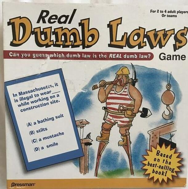 Can you guess which dumb law is the real dumb law? Based on the book 101 Real Dumb Laws, this board game will bring you laughs and amazement as you uncover real laws from all across the country! At the start of each round, players are read the beginning of a law and given four choices -- only one of which is correct. Think you know the answer? If you're...