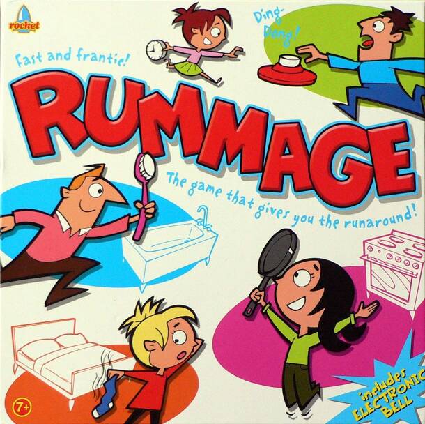 Rummage - A Game Straight Out Of The Top Drawer! This game takes place in your own house. The board has several rooms which players mark on their score sheets as actual rooms in the place where you are playing, so the Red room might be your kitchen, the Green room might be your bathroom. Players then roll & move around the board and on entering a room...