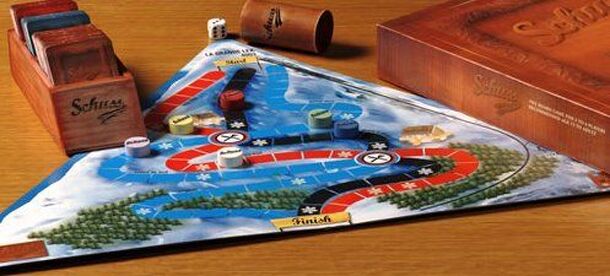 Schuss looks like it is becoming the new choice of after-dinner board gamers, pushing Trivial Pursuit off the table. The board itself is designed like a piste map, with blue runs throwing up easy Alpine-related questions, with tougher questions on the testing blacks. Mountain restaurant stops help you to change runs and wipe-outs can have 'hilarious...