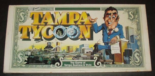 "The Game of Tampa Business & Trivia" This game about the city of Tampa, Florida is a combination of economics and trivia. The game includes a monopoly-style business games and a trivia game about the history of Tampa. The economic game is essentially a monopoly clone with a board showing local business names and tourist attractions. Many of the trivia...