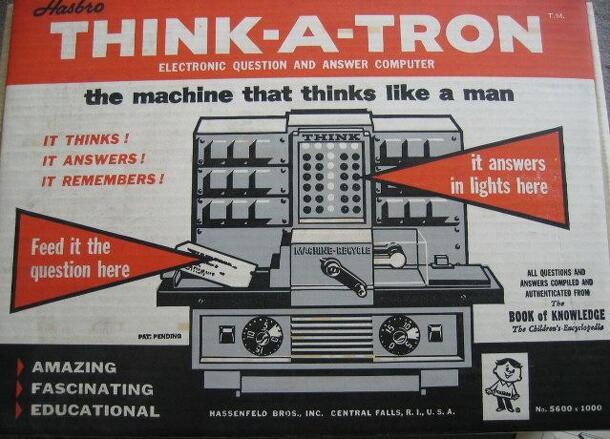 Think is a Trivia game with 5 knowledge areas. On each player's turn, another player takes a new Card for reading the question(s). On each Card there are 5 questions, for one each knowledge area. Which question is asked is determined by rolling 2 dice. Rolling doubles or 6s results in a special effect, such as getting a free Point or getting 2 questions....