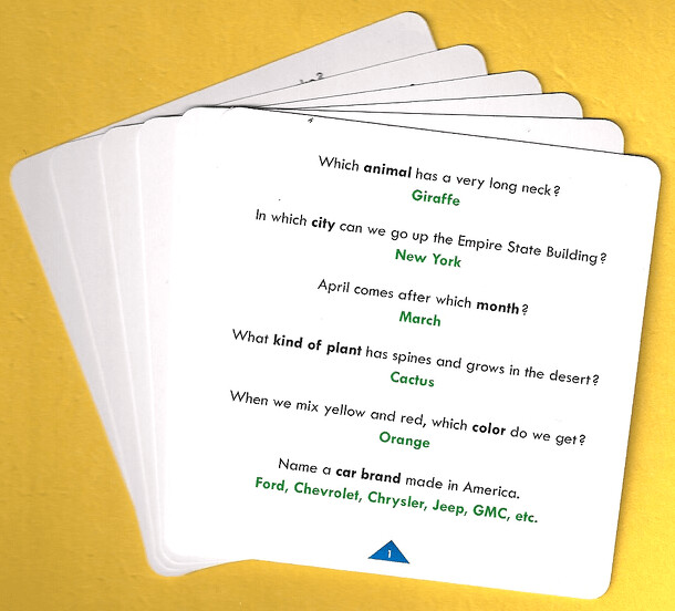 Think Again! — a.k.a. C'est pas faux! (French for "It's not false") — is a party trivia game in which all players know all the right answers – but where the right answer is not always what you are looking for. Players take turns reading questions. After a player finishes reading a question, he reveals the back of the next question card, which indicates...