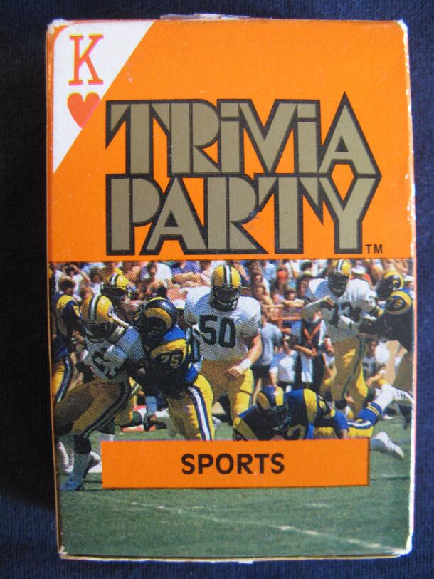 Trivia Party: Sports is a card game that combines a traditional deck of cards with sports trivia. There are four different ways to play: In Trivia Party, one player draws a card and asks a question of another player. The answering player may choose from questions ranked from 1 (easiest) to 5 (hardest) and gains points equal to the difficulty level on a...