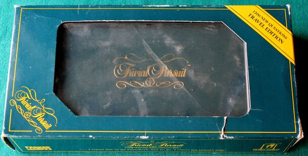 A travel variant of the famous Trivial Pursuit game. The object is to answer questions in different color-coded categories, and to win "wedges" with correct answers. The first person to win a wedge of each color wins the game. The game comes with a plastic container that can be split into two parts forming the player's "cake" and cards container. Played by...