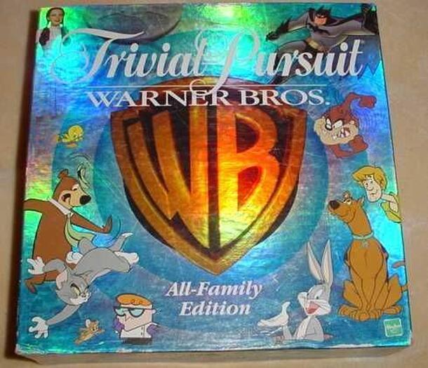 Another version of Trivial Pursuit: Genus Edition where players answer questions based on Warner Brothers movies, television series and cartoons. Contains two separate sets of cards, one regular set for adults, and picture cards for kids. The categories in this set are: Movies Television Cartoons Classics Behind the Scenes Anything Goes "Th-th-that's all...