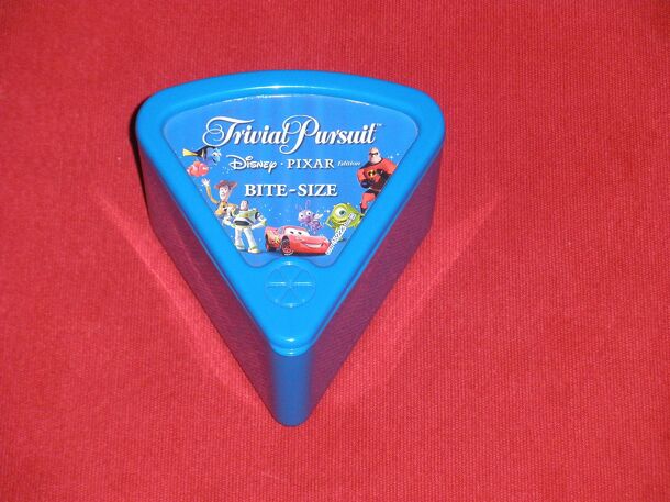 This is another in the "Bite-Size" range of Trivial Pursuit games. It is intended as a portable travel game. The game is packaged in a wedge ("piece-of-pie") shaped box. The game does not feature a game board, and thus, there is no roll-and-move mechanic. Instead, players roll the color-coded die, and answers a question matching the color rolled. If a...