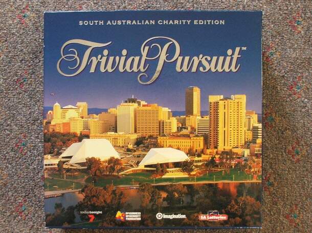 From the back of the box: It's the most popular trivia game in the world, and now South Australia has its very own edition. The Trivial Pursuit South Australian Charity Edition. With 1800 uniquely South Australian questions and answers specially written for this local edition, it's the trivia game all Crow Eaters will love to play. This limited edition...