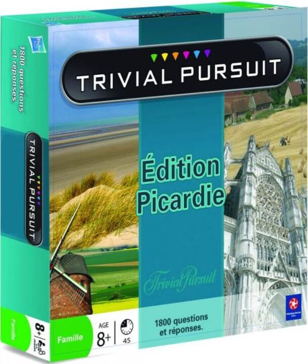 Trivial Pursuit is a roll-and-move trivia game where players try to collect different colored "wedges" in their player wheel, and than make it to the center of the game board. Trivial Pursuit: Editie Antwerpen is a smaller version with only 60 cards. Categories: Blue: Aardrijkskunde Pink: Amusement Yellow: Geschiedenis Purple: Kunst & Literatuur Green:...