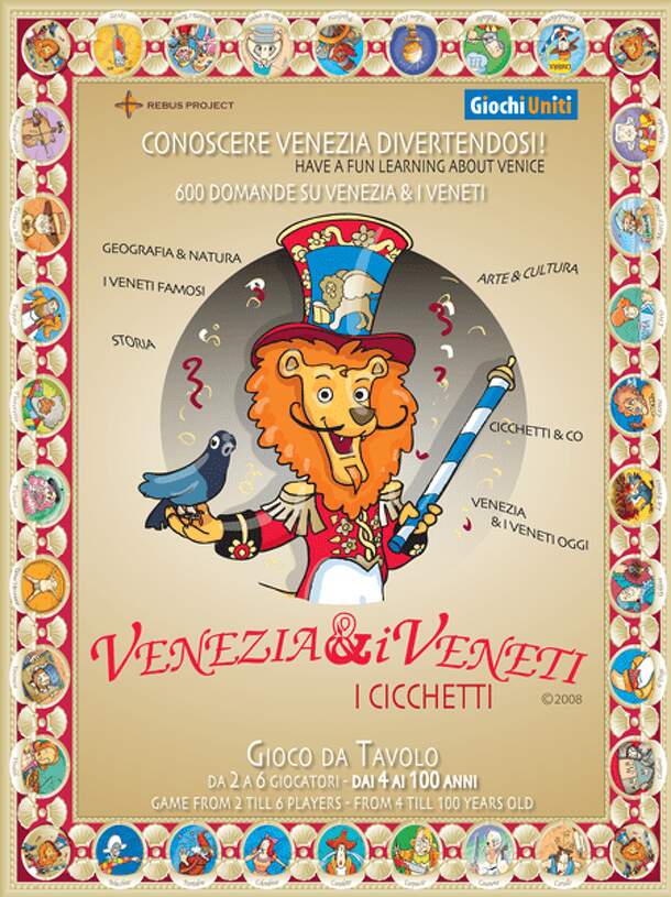 Venezia & I Veneti: I Cicchetti (aka, "Venice and the Venetians") is a trivia game for kids to adults. It provides an entertaining journey to discover the characters, culture and sights of Venice. To advance on the board, players have to answer questions and carefully manage the travel budget. The player who reaches the end first is the winner. Question...