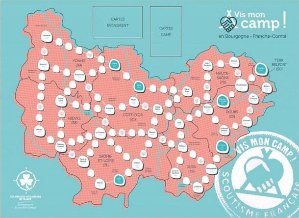 Vis mon camp ! en Bourgogne - Franche-Comté is a navigation game. Each player starts from an EEDF (Eclaireurs & Eclaireuses de France) group in the region and has to go find other groups to make a camp on a field. This allows the player to cross the region to get to the groups they need to camp with, then make a second trip to the camp location, finding...