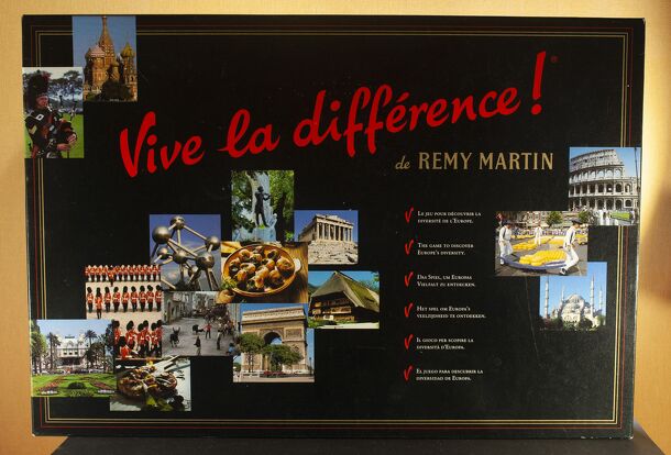 Remy Martin produce Cognac and this promotional game, published with Ravensburger, is for the connoisseur and bon vivant amongst you (them that knows a bit and likes a good dinner). The game is a roll & move tour around Europe, trying to land on the given city and answer a quiz question. Players collect gourmet cards and coins, worth victory points....