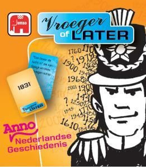 Learn about the history of the Netherlands. The person who loses his or her cards first, will win. When it's your turn you put a card on the right place in the line of history. Or, you say the previous player didn't put the card in the right order. The player of the two who was wrong gets more cards. Vroeger of later is the only Dutch game in the Anno...