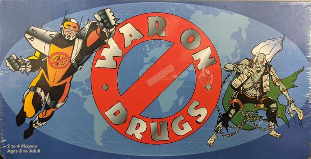 "War on Drugs" is a roll and move Trivia Game designed to help parents and educators have discussions with children about the dangers of Drug Use. Players roll a die, and move, then are asked a question. If they get it correct, they roll again so on and so forth. The first player to get their piece to the square marked "100" (they are in numerical order)...